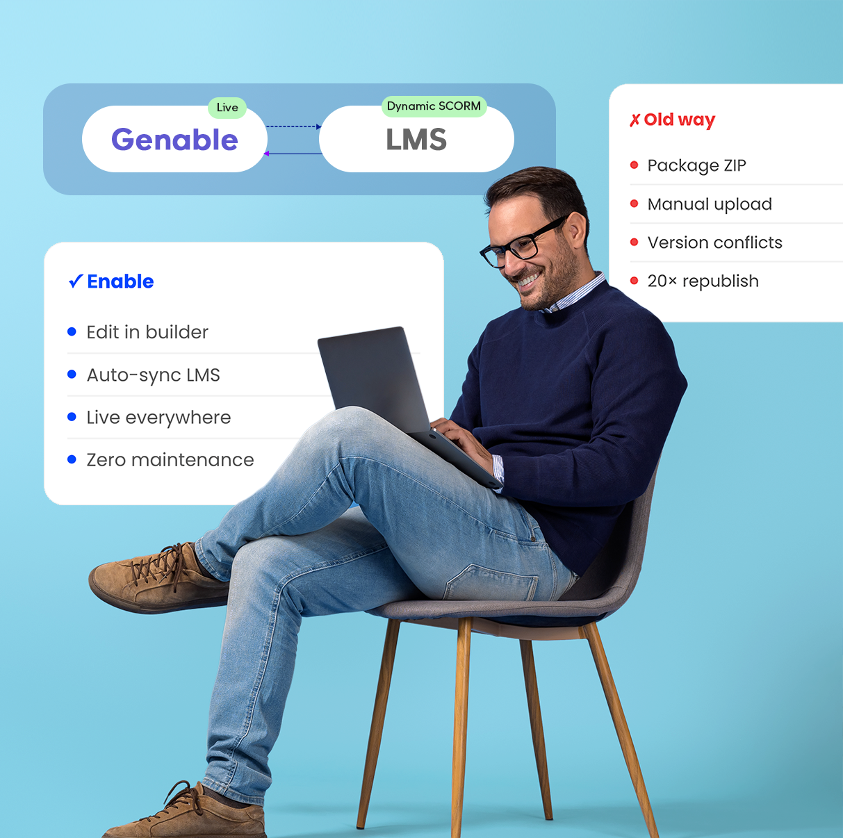 Genable adds a Dynamic Experience Layer between your LMS and the learner. Content becomes adaptive, measurable, and instantly updatable   without migration.