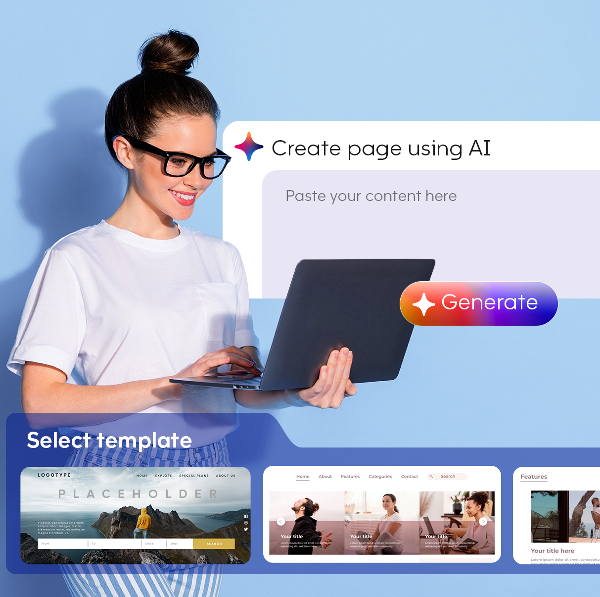 • AI-assisted page creation and content generation